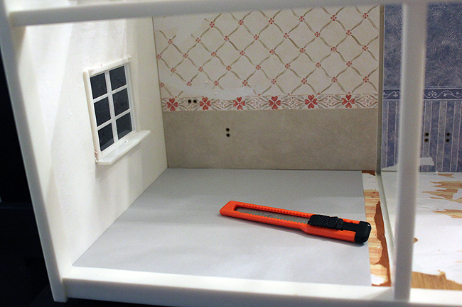 På vissa ställen i huset klistrade jag fast ett cardstock i samma storlek som rummet